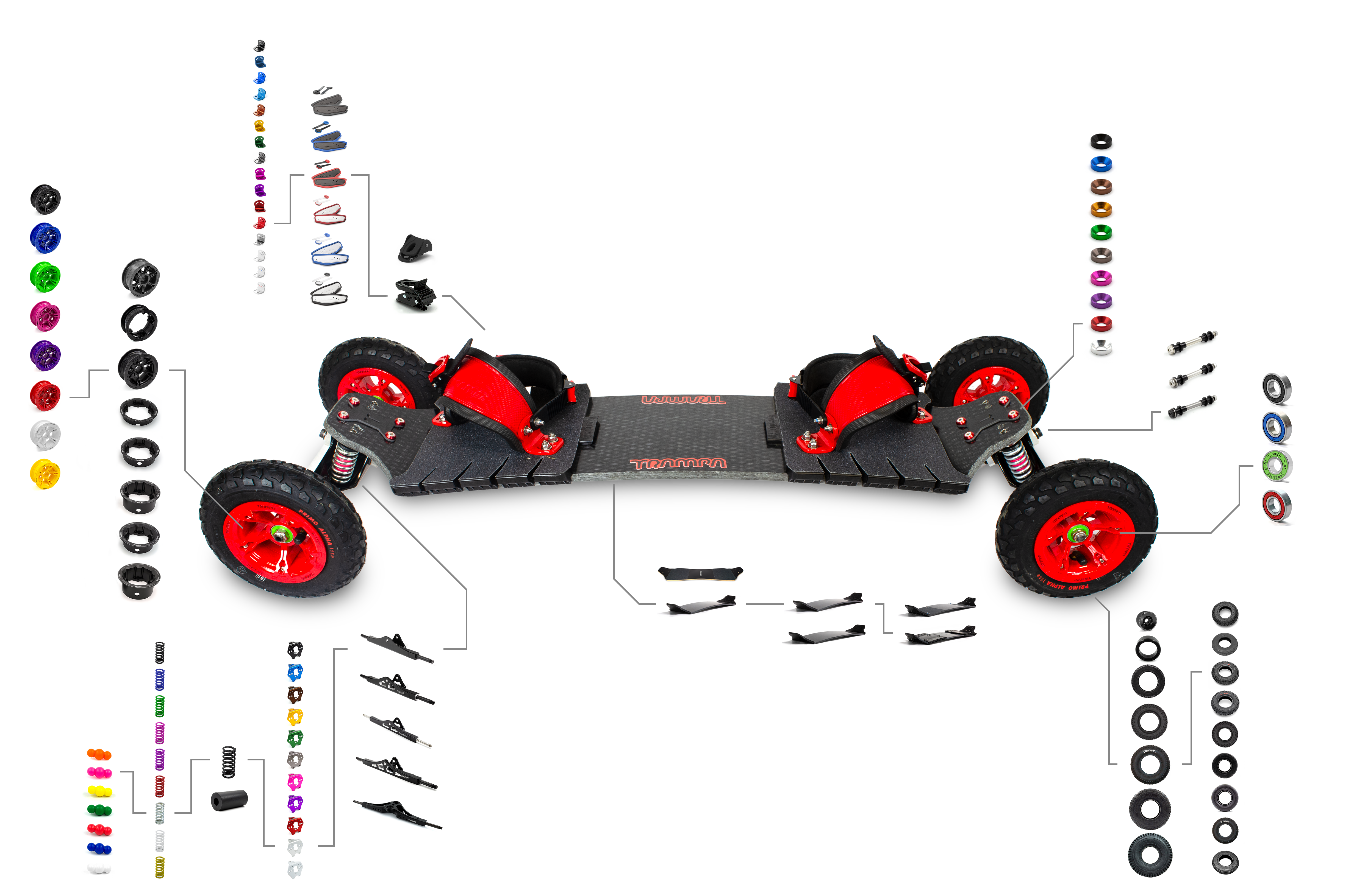 The rest of the board features the same quality and customisation you would expect from Trampa, with a plethora of options for Wheels, Trucks, etc