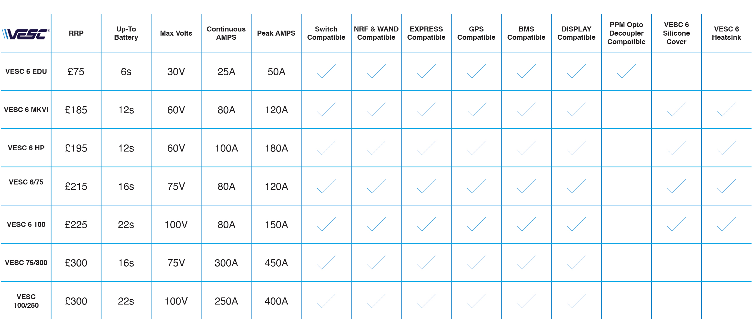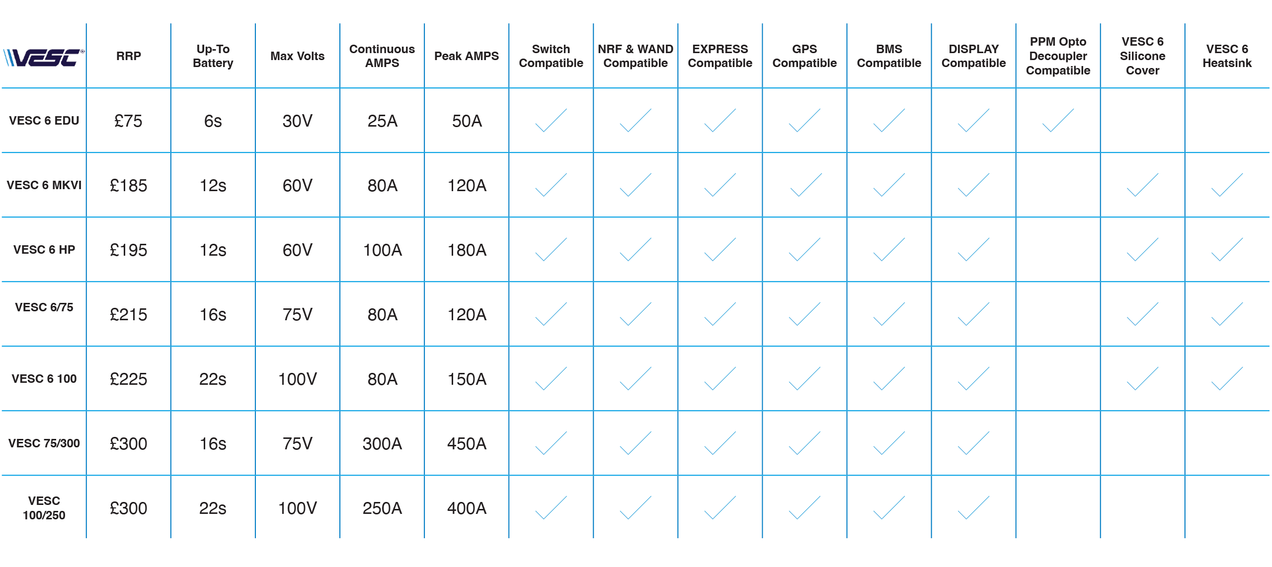 VESC 6/75 – If you are using a 16s Battery Pack to power your mountainboard this controller will automatically be selected to handle the higher voltage.